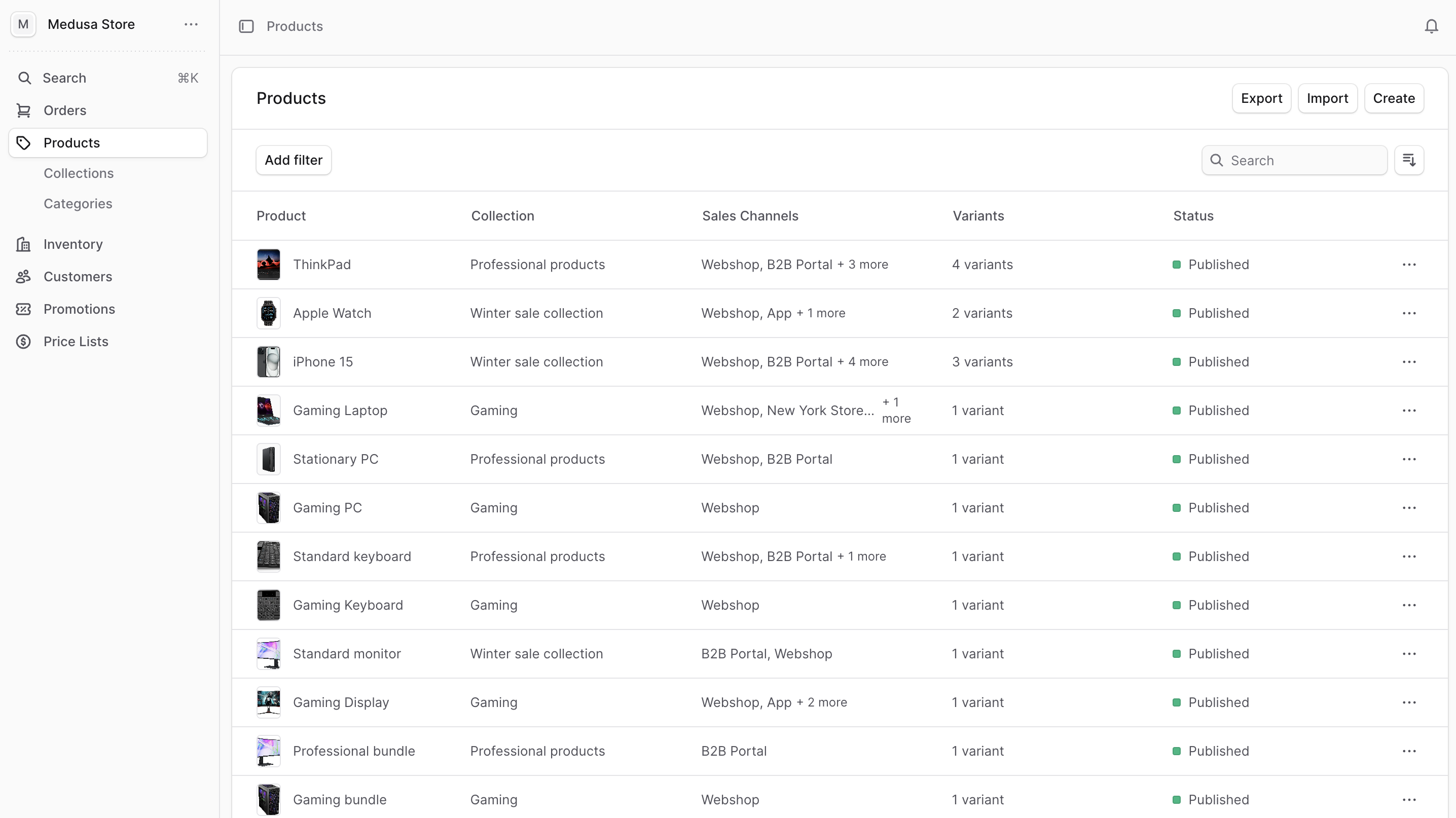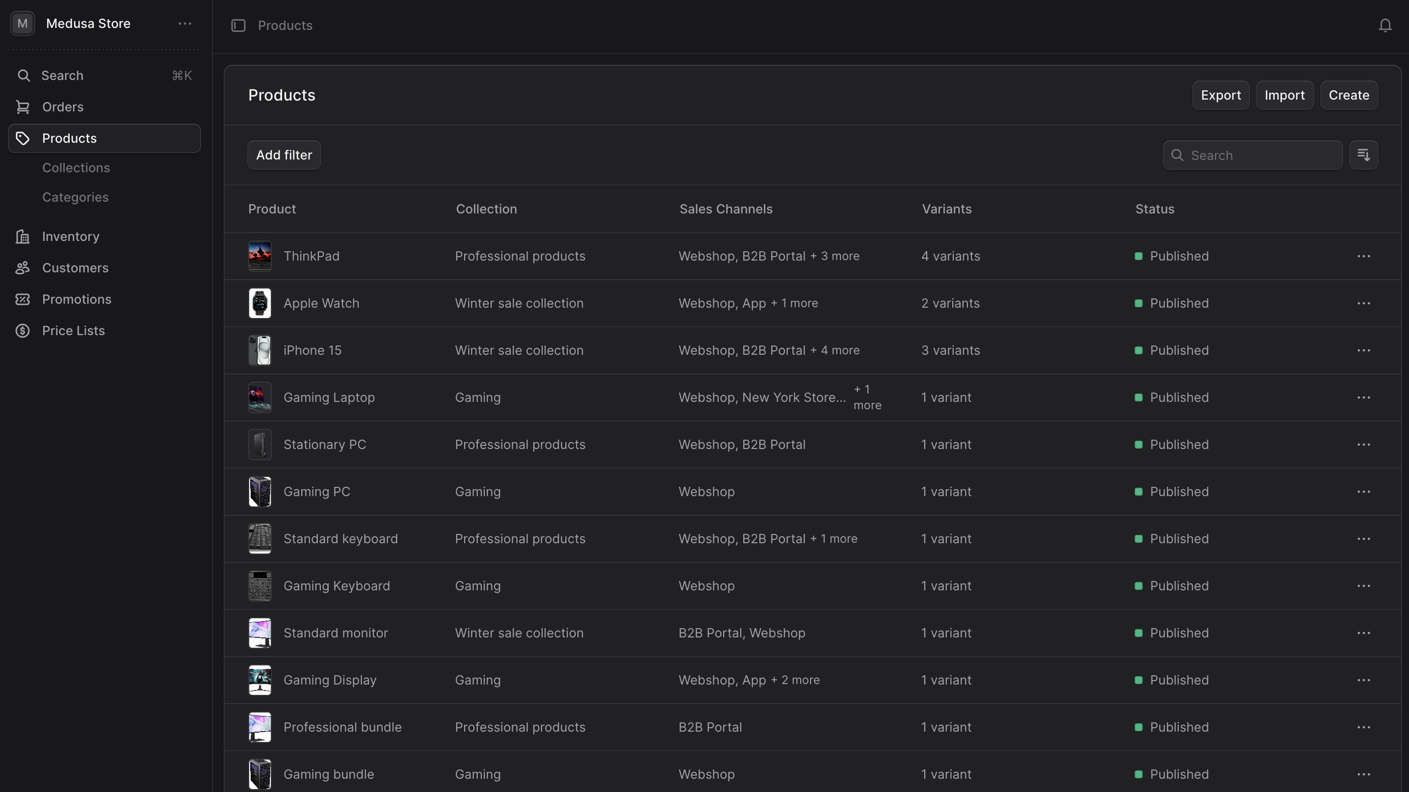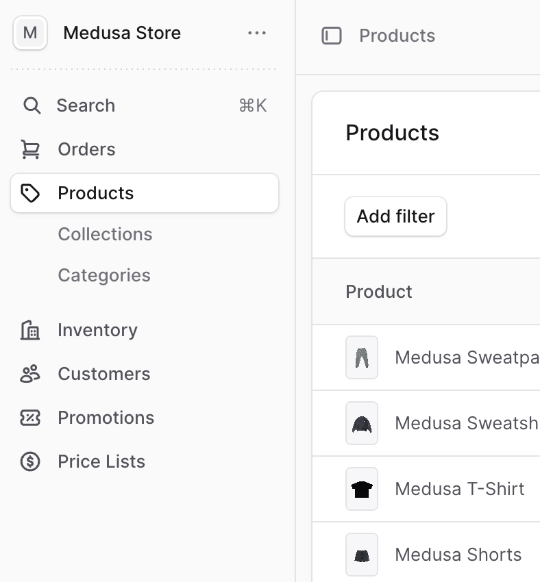 At the bottom of the sidebar you’ll find a Settings item, which takes you to further settings of your store such as Region and Sales Channel management. You’ll also find your avatar and name.By clicking on your avatar and name, you’ll view quick actions such as going to profile settings, view shortcuts, or changing the admin theme.