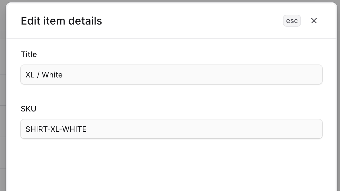 Enter the inventory item’s title and SKU in their respective fields.
