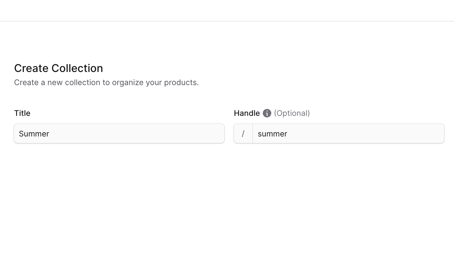 The value of the Handle field is used in the collection’s URL on the storefront. It allows you to create a human-readable URL for the collection. The handle must be unique across all collections, and it must contain lowercase letters, numbers, and hyphens (-). If not specified, BoxNCase Partners will generate a handle from the title.