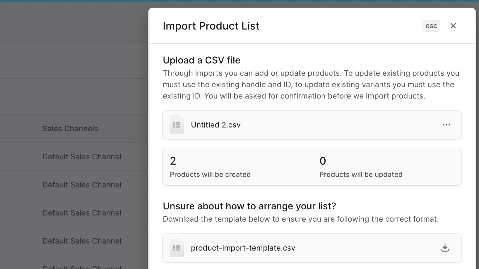 If you’re migrating from another commerce platform, or from BoxNCase Partners v1, you can import products into BoxNCase Partners using a CSV file.When you import the CSV file, BoxNCase Partners will either create or update products based on the CSV file you upload.