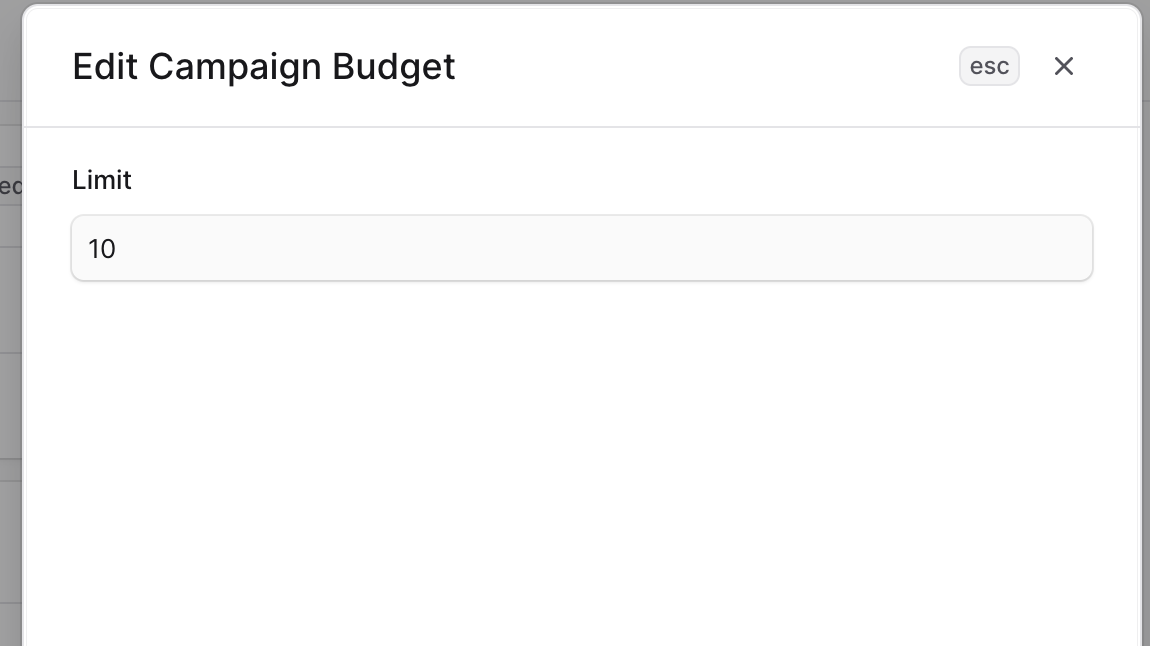 In the Limit field, you can set a campaign budget limit based on the type you chose.