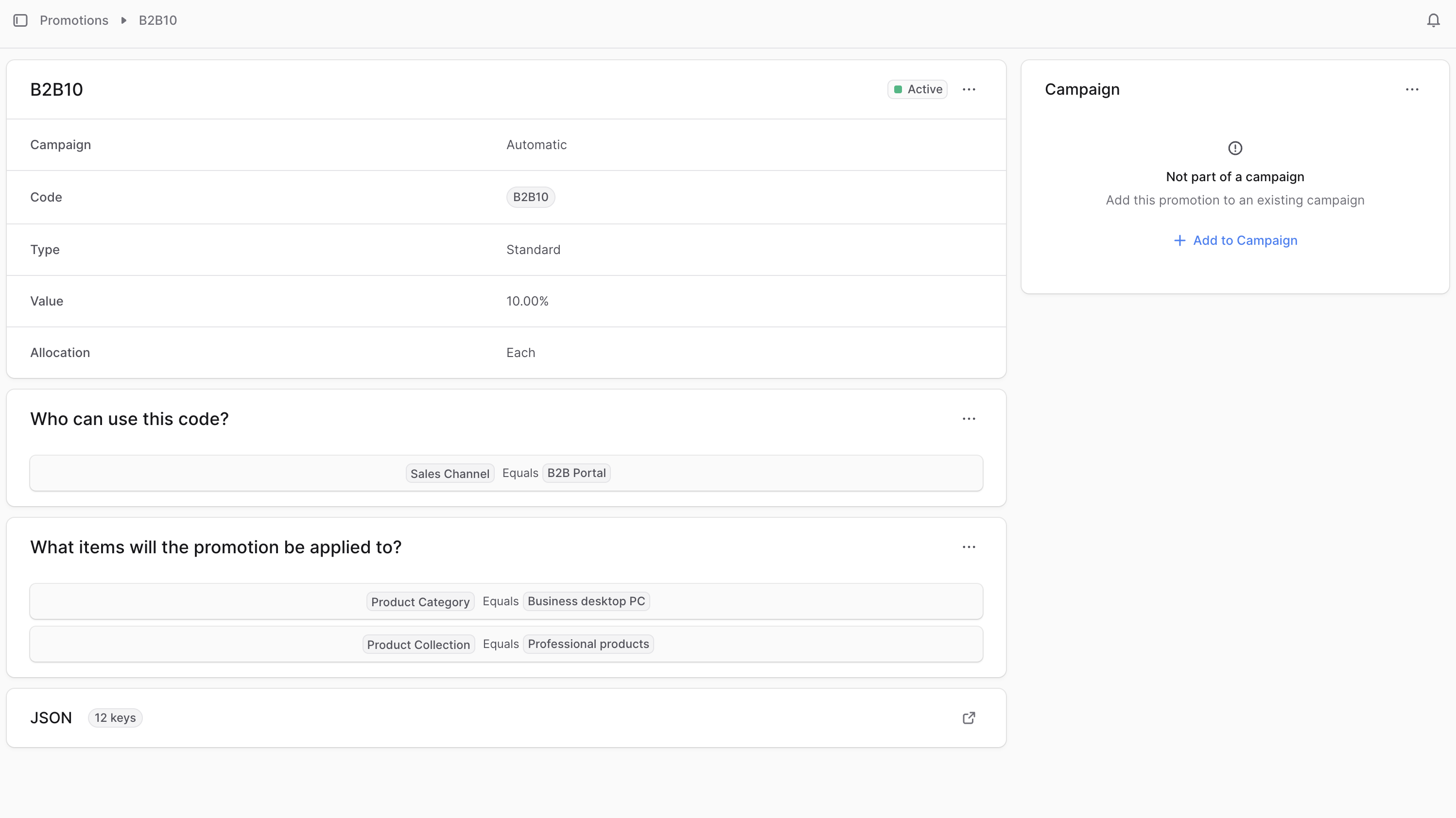 If you created a promotion without a campaign, you can add it to an existing campaign from its details page.To add a promotion to a campaign: