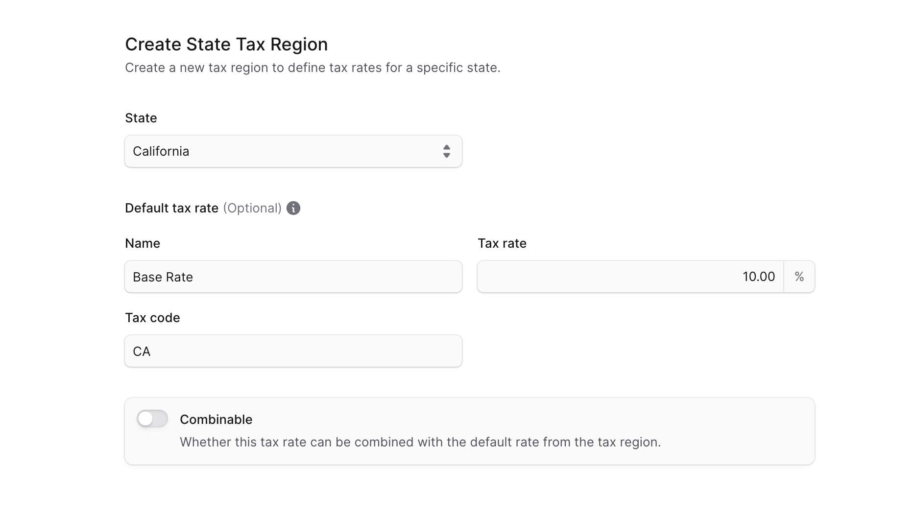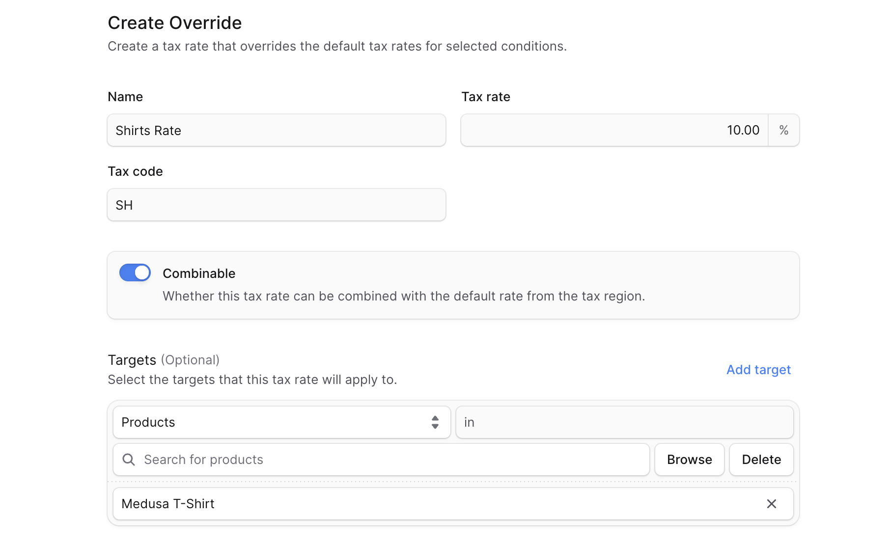 If the override should be combined with the default tax rate, enable the “Combinable” toggle.